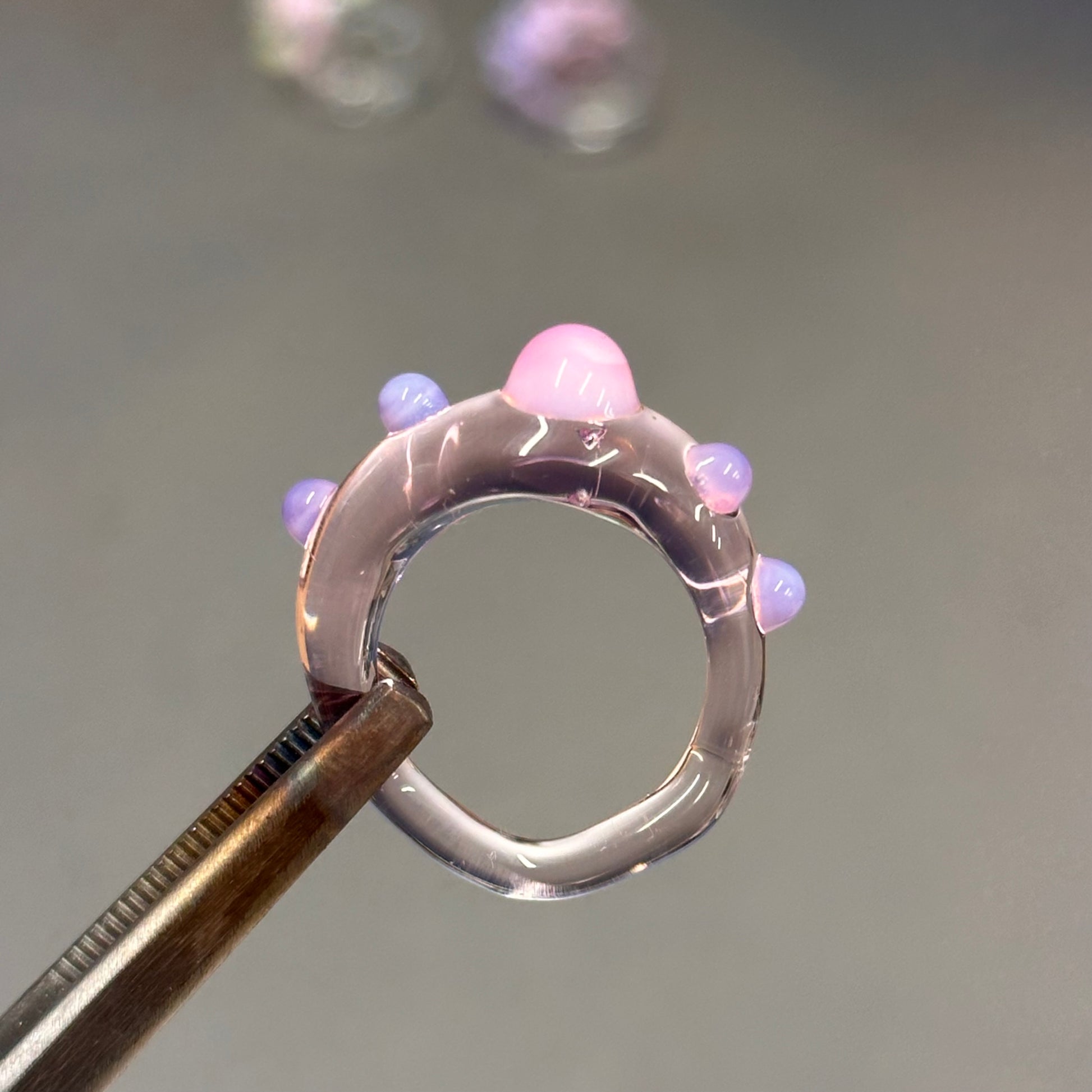 Anillo hecho a mano con vidrio de borosilicato, un material resistente, ligero y con una transparencia preciosa.