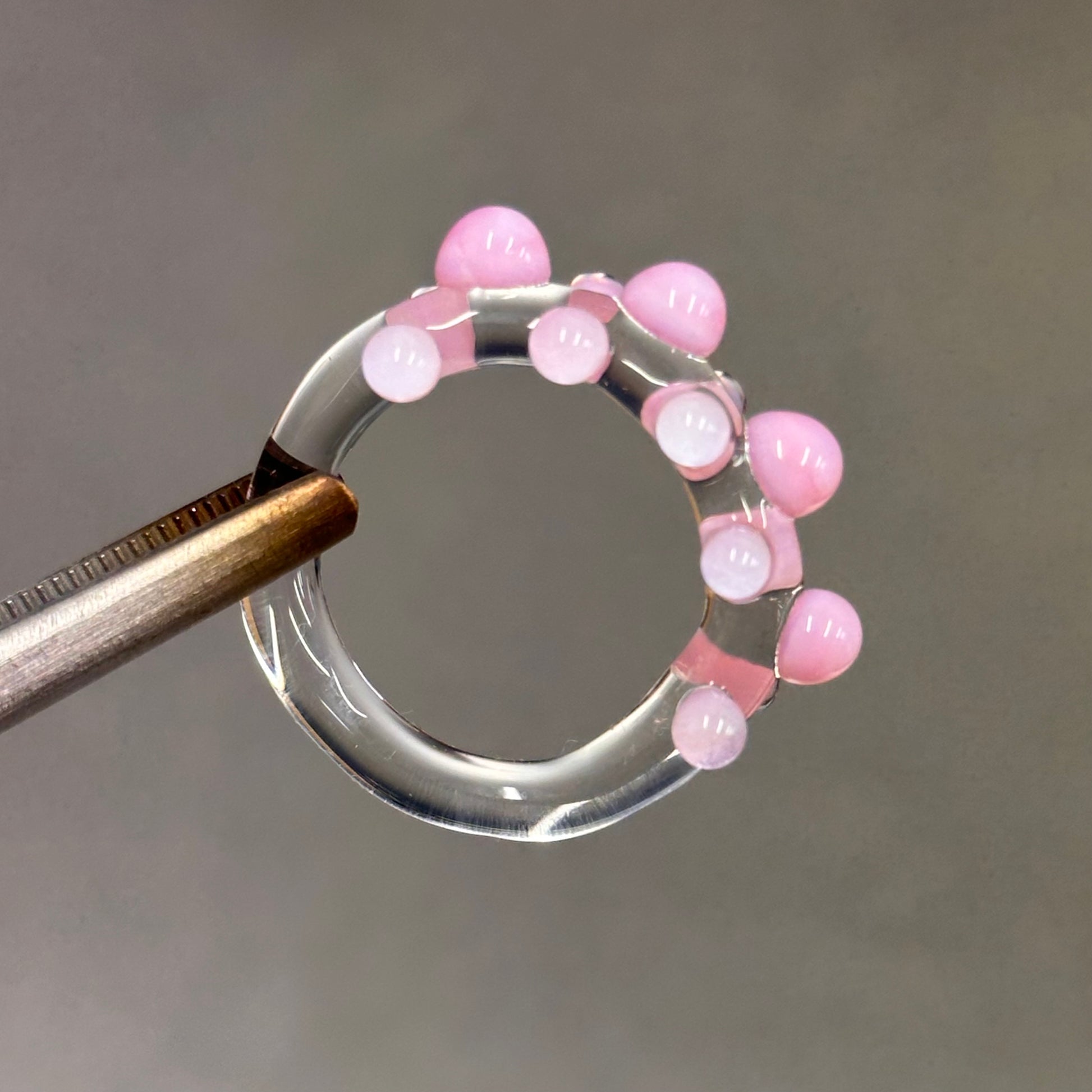 Anillo hecho a mano con vidrio de borosilicato, un material resistente, ligero y con una transparencia preciosa.
